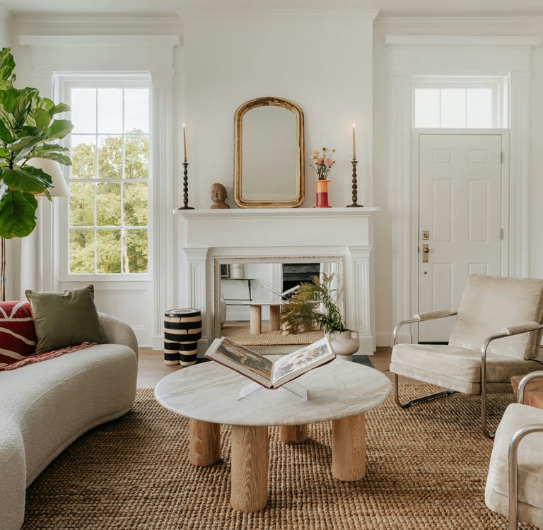 Organic textures like rattan, jute, and light woods bring a sense of relaxed sophistication. A woven basket in the entryway, a seagrass tray on the coffee table, or a jute rug underfoot adds warmth and depth while keeping the aesthetic casual but pulled together.